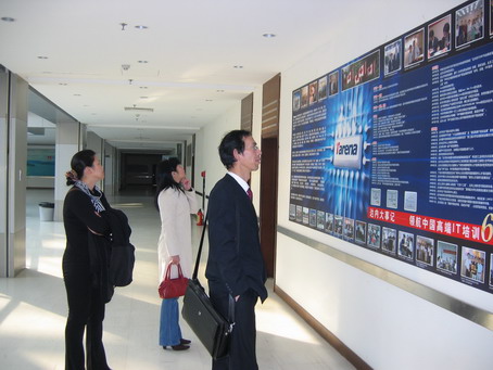 12月17日晚11时考察组从衡阳出发,18日早晨6点多钟到达广州。上午9点考察组一行首先拜访了达内科技有限公司。该公司由美国国际数据集团IDG投资,由来自SUN、IBM、亚信、华为、东软、用友等国际知名IT公司的技术骨干、海外职工和加拿大专业技术人员创办,直接引进北美IT技术,结合中国IT企业的现状,致力于为中高端IT企业培训并输送基于Unix/Linux平台、Oracle大型关系数据库、IP网络协议、Web和企业级应用的中高级软件人才。目前,达内已经输送了上万名中高级软件人才到国内国际知名企业以及上市公司,学员们都通过培训找到了好工作。经过前期沟通安排,公司目前有8名同学在该企业学习培训。