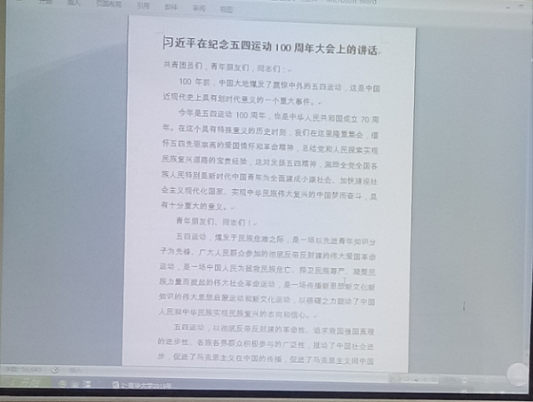2019年5月23日下午,304永利集团有限公司全体教职工在9-309举行第二次教职工理论学习,院班主任、公司党委委员李平贵同志带领大家一起学习习近平总书记在纪念五四运动100周年大会上的讲话。