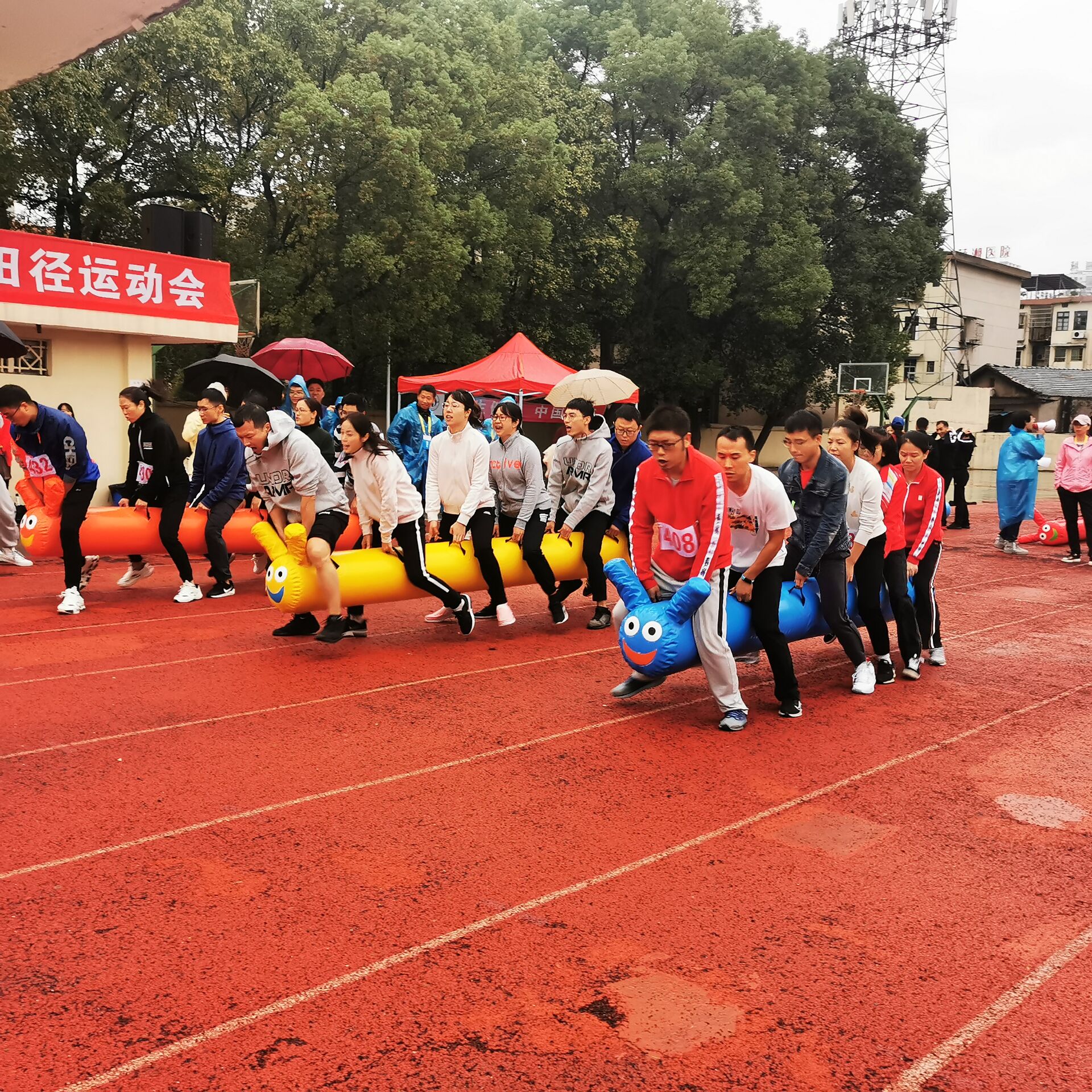 趣味运动会包含100米、1500米、1500米、骑羊角球、跳远、滚铁环绕杆、毛毛虫、托球跑、跳绳跑等项目。运动会当天阴雨绵绵,数理运动健将们用脸上洋溢着的兴奋热情扫去阴沉天气,个个精神焕发,似乎预示着公司定能取得辉煌成绩。比赛正式开始后,整个赛场顿时沸腾起来,加油助威声此起彼伏,络绎不绝。304永利集团有限公司的健儿们频频取得骄人的成绩,多个项目创造公司历史,引得在场的其他教师兴奋不已。其中也涌现了一批运动典型,如唐益群100米、刘艳琪1000米、陈健50米、李平贵1000米、王红勇滚铁环绕杆、李伟军和王会兰托球跑均获得冠军。公司老师在比赛中的出色表现将整个比赛的气氛带入了高潮。雨中比赛,老师们要面临的不仅是身体上的考验,更是心理上的考验。参加比赛的运动员真正体现了努力拚搏、永不服输的运动精神,它带给我们的感受远比取得的成绩要丰富得多。这种不断超越自我的精神是个人的巨大财富,更是将来能够走得更高更远的稳固基石。
