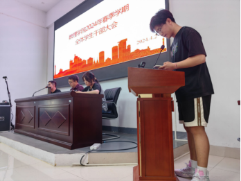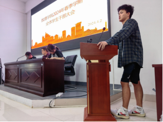 欧雷老师发言。他首先提醒同学们要注意宿舍安全,特别是随着雨季的来临,宿舍环境可能变得潮湿,大家要注意防潮防霉。同时,清明假期即将来临,欧老师提醒大家在外出时务必保护好自己的人身安全和财产安全,享受一个愉快而安全的假期。假期结束后,欧老师强调要开展班级日志工作,通过这一举措来营造良好的学风氛围,促进班级工作的顺利进行。对于换届工作,欧老师同样表达了殷切的期望,他希望同学们能够保持饱满的精神状态,薪火相传,继续为部门的发展贡献力量。