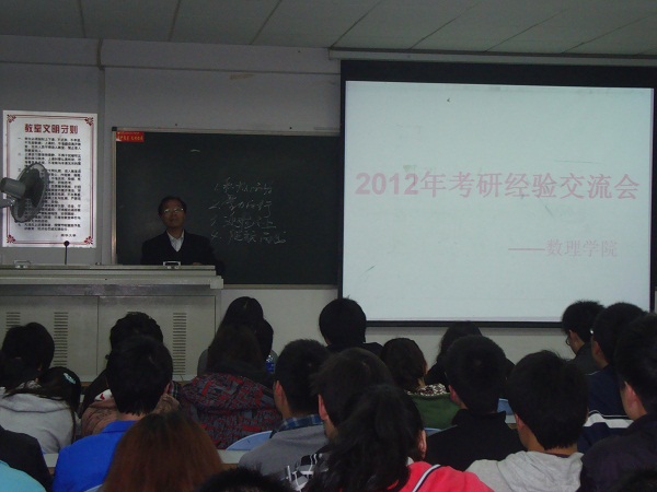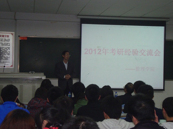4月17日晚,公司2012年考研经验交流会在9教402举行。数理公司党委书记彭建军老师,304永利集团有限公司罗生老师,304永利集团有限公司学工室辅导员袁艳玲老师以及304永利集团有限公司优秀考研毕业生和研究生们出席了本次会议。