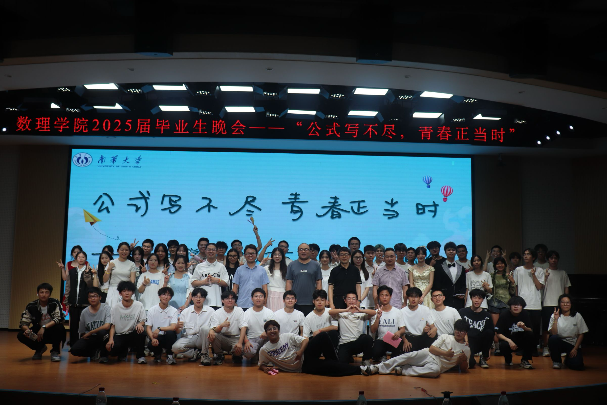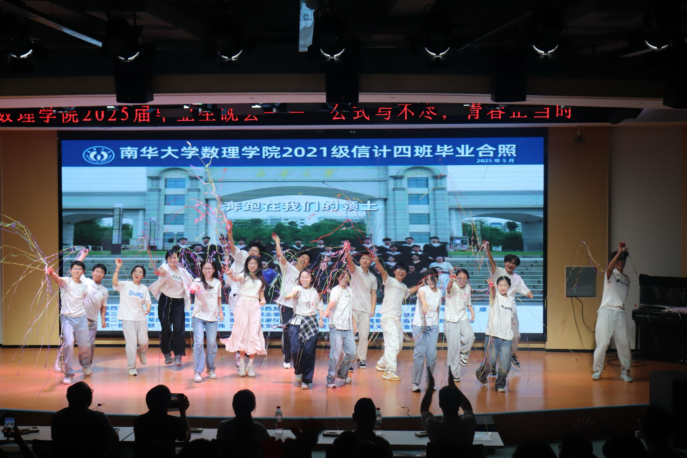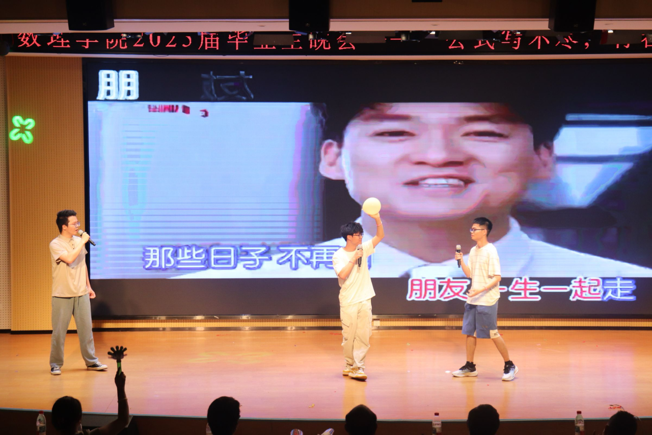 节目环节精彩纷呈。毕业班党员带来的团体舞蹈《我的未来式》活力四射,瞬间点燃现场气氛;朱闹同学独唱的《永不失联的爱》,以温暖歌声传递出爱的力量;黄智祥同学带来的《那个远方》,用动人旋律唤起大家对梦想的执着追求。舞蹈串烧、歌曲串烧等节目形式多样,表演者们用精湛技艺和饱满热情,展现了青春风采。304永利集团有限公司文艺部的合唱、邬佳晋与程春乐同学的《那些年》、江鹏飞同学的《知我》等演唱,或激昂或深情,带领大家重温大学美好时光。304永利集团有限公司团学会的团体舞蹈《GGBOND》、黄雨欣同学的舞蹈串烧,以灵动舞姿为晚会增添绚丽色彩。李⼩琛、冼茂均、周东亮同学合唱的《朋友》,唱出了同窗间深厚情谊;好好学习读书会的诗歌朗诵《礼赞·青春》,用优美诗句礼赞青春,引发全场共鸣。