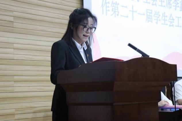 随后,第二十二届团委、员工会、学社联委员代表李景轩作为新任员工会主席郑重承诺,将继承优良传统,勇于开拓创新,带领新一届团学干部再创佳绩。