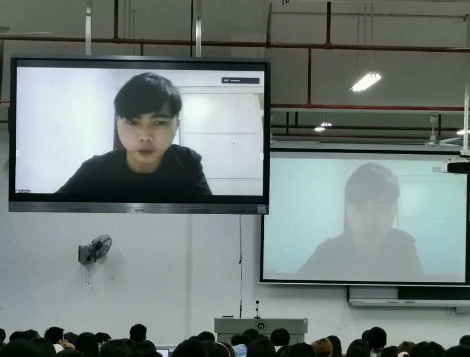 首先,16级罗滕峰同学通过线上视频通话,进行就业分享,阐述了他自己秋招时的曲折经历,讲述了学历在工作竞争上与名校员工的差距,提出只有技术好才是硬道理。
